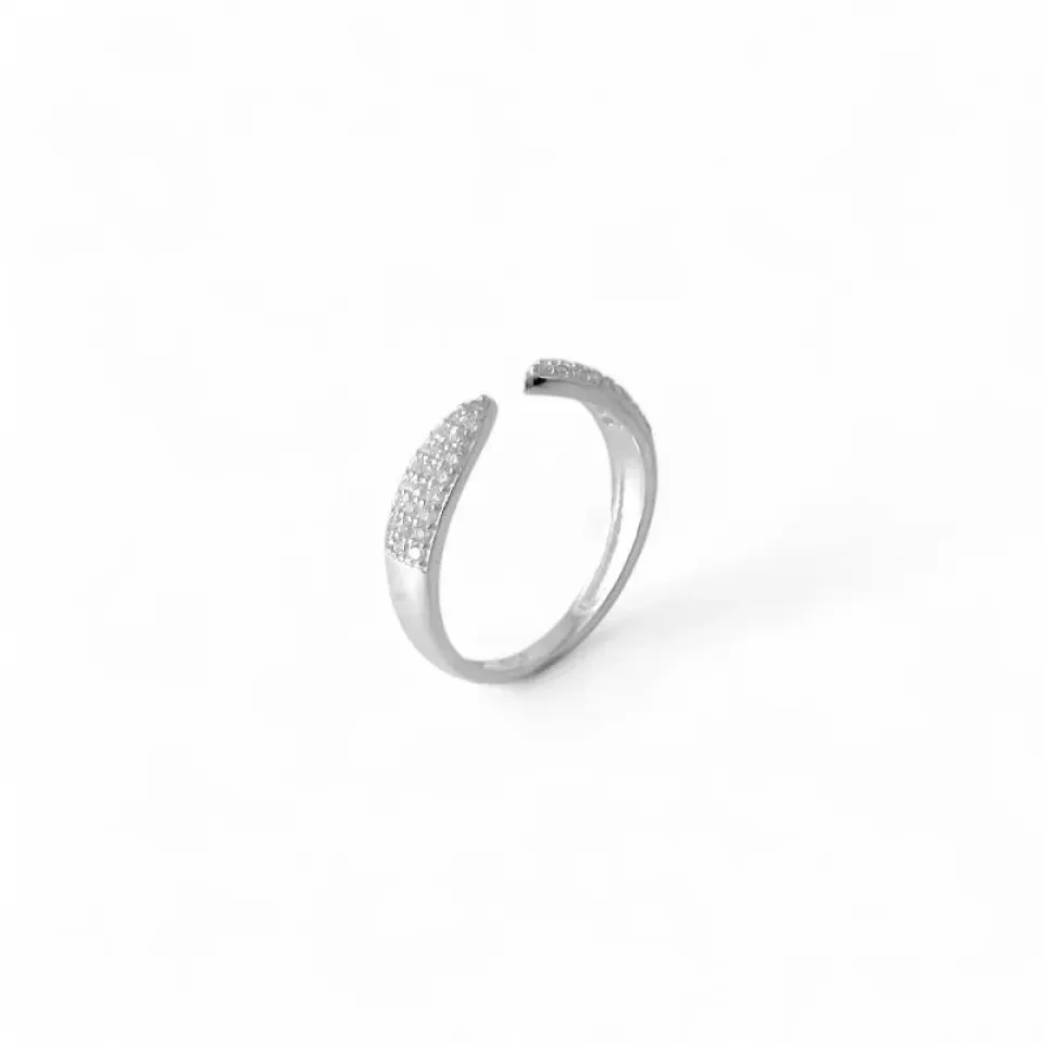 Elegância e modernidade em um design versátil. O Anel Aberto em Prata 925 é delicadamente cravejado com zircônias, criando um brilho sofisticado que valoriza qualquer look, perfeito para uso diário ou ocasiões especiais.