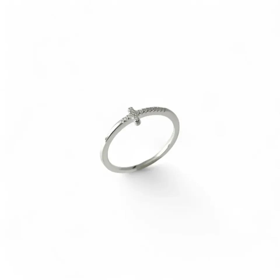 Anel Cruz Prata 925 Cravejado com Zircônias