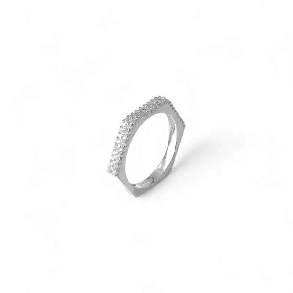 Anel Geométrico em Prata 925 com Zircônias
