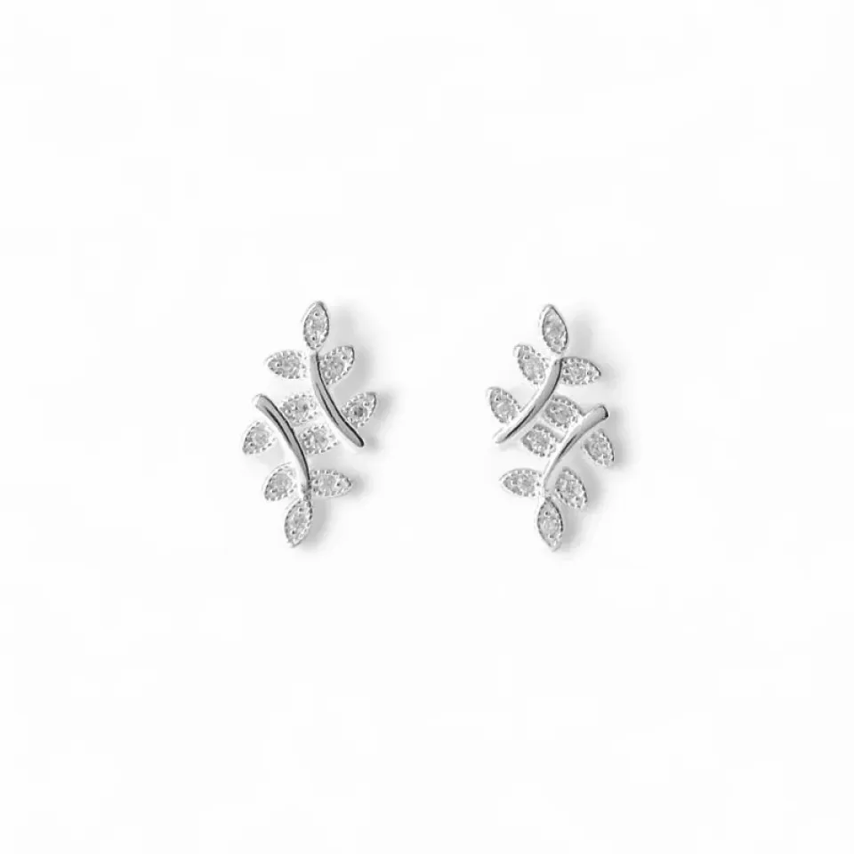 Brinco Folha Prata 925 com Zircônias