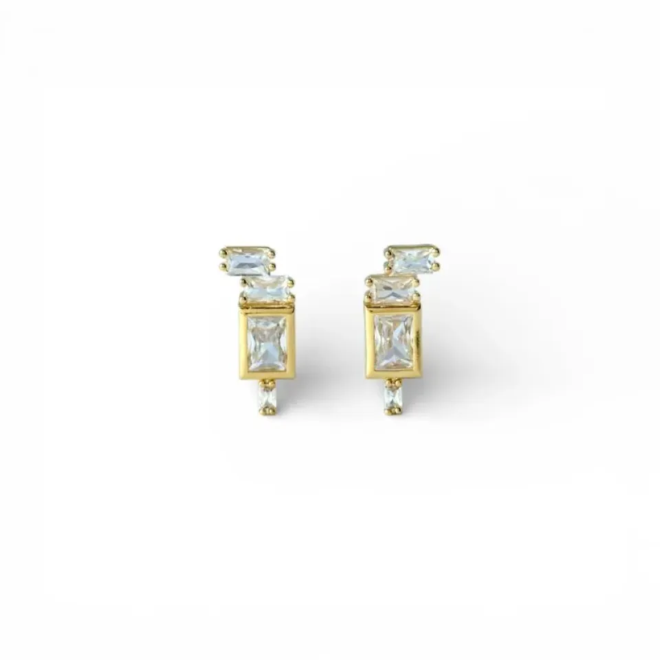 Brinco Geométrico Retangular com Zircônias – 2,0cm