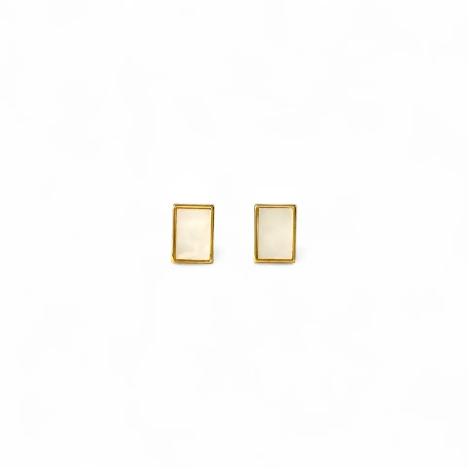 Brinco Madrepérola Retangular Banhado a Ouro 18k