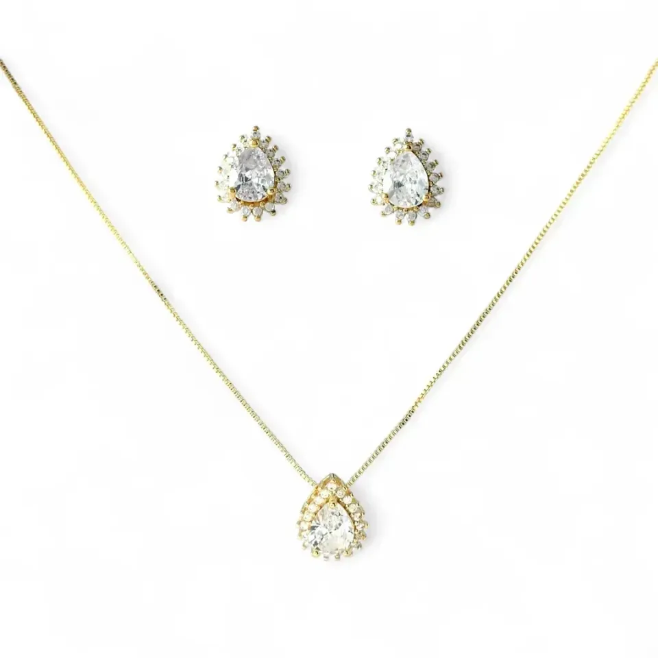 Conjunto Gota Banhado a Ouro 18K com Zircônia