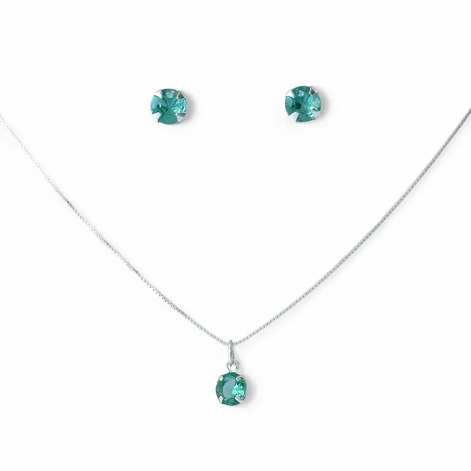 Conjunto Ponto de Luz Prata 925 Verde – Brilho e delicadeza