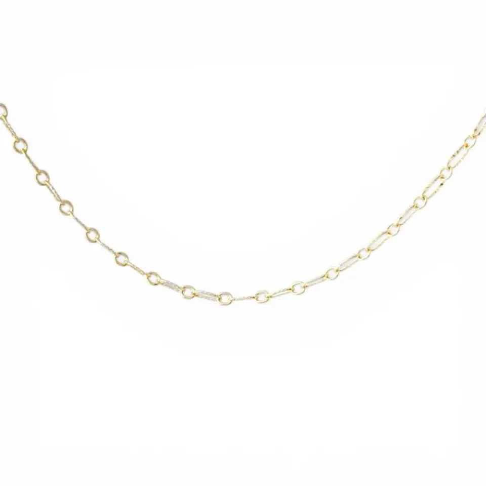 Elegante e sofisticado, o Colar com Elos Ovais Trabalhados banhado a Ouro 18k traz um design clássico com detalhes que valorizam a peça. Os elos trabalhados adicionam textura e brilho, criando um visual refinado e atemporal.
