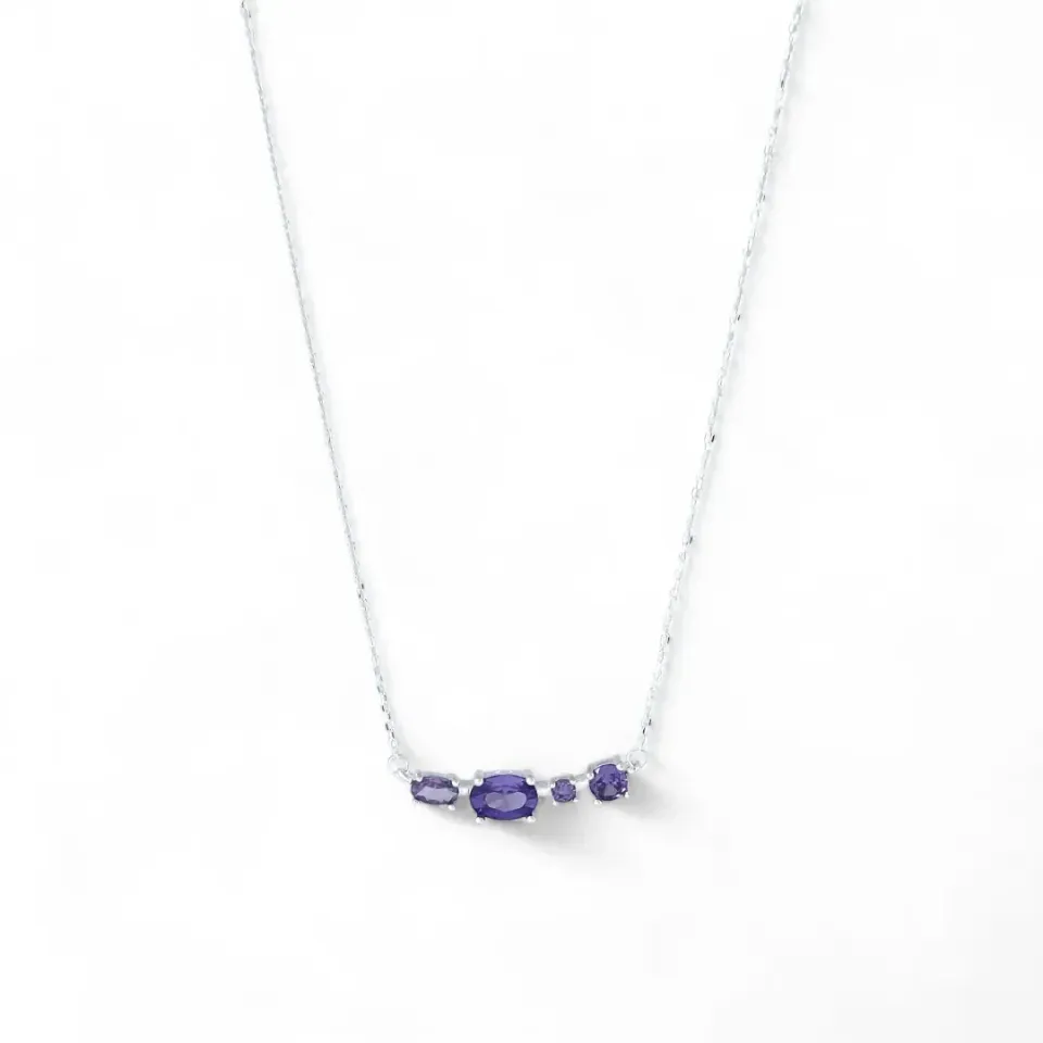 Colar Linha Prata 925 com Zircônias Lilás