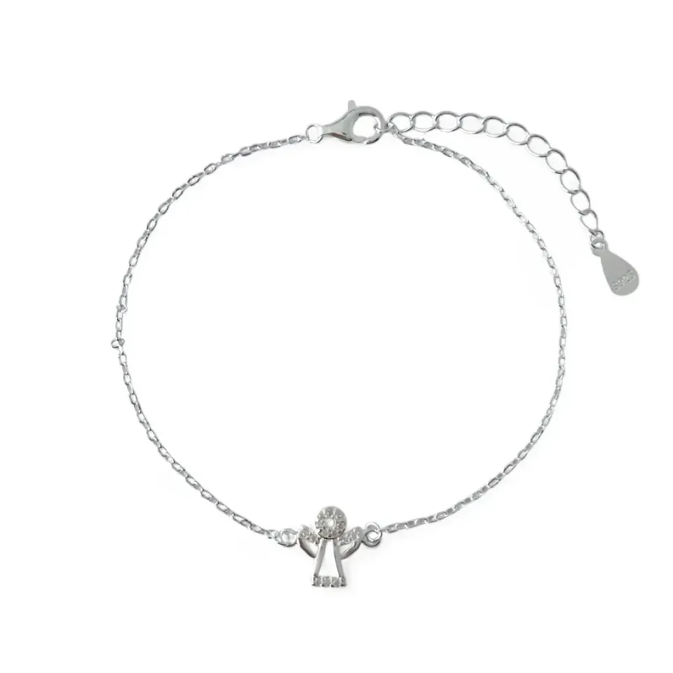 Proteção e delicadeza em uma joia especial! A Pulseira Anjo em Prata 925 com Zircônias traz um design encantador, perfeito para simbolizar fé, luz e boas energias no seu dia a dia.