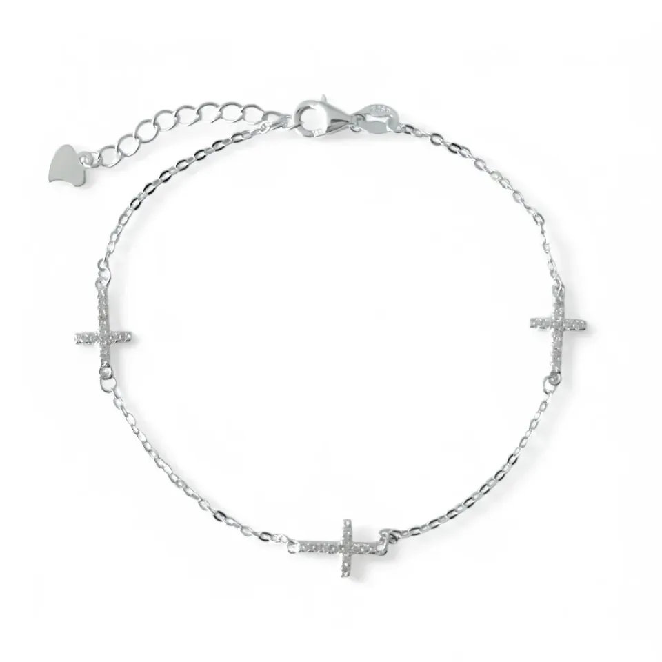 Fé e elegância em uma joia atemporal! ✨ A Pulseira Cruz Prata 925 é delicadamente cravejada com zircônias, trazendo um brilho sutil e sofisticado. Perfeita para quem busca um acessório cheio de significado, ideal para o dia a dia ou ocasiões especiais.
