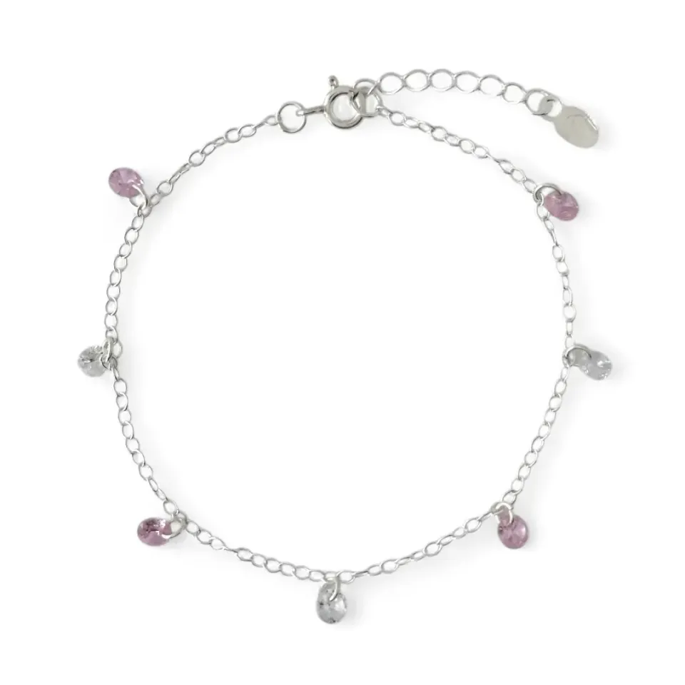 Pulseira Pedrinhas Prata 925 Rosa/Cristal com Zircônias