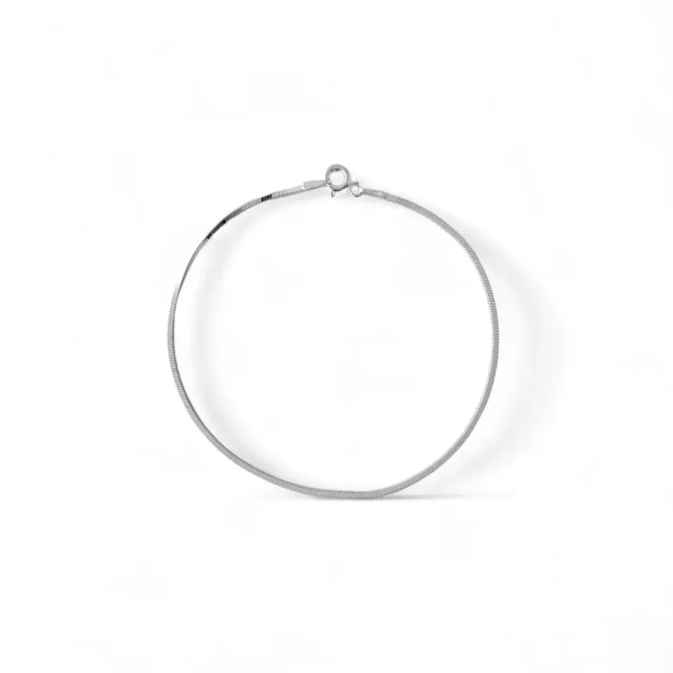 Fabricada em Prata 925, essa pulseira possui um design rabo de rato laminado, garantindo um acabamento liso e reluzente que reflete a luz de forma delicada.