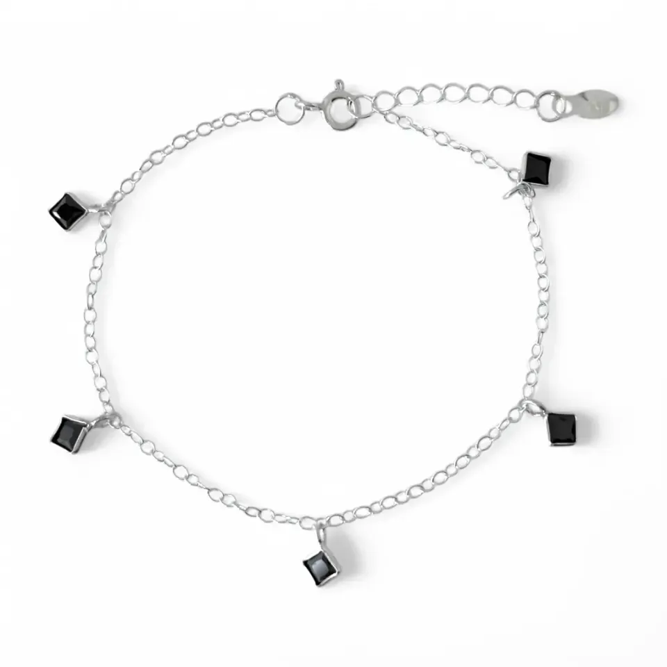 Pulseira Quadrados Pendurados Prata 925 Zircônias Pretas – Modernidade e sofisticação