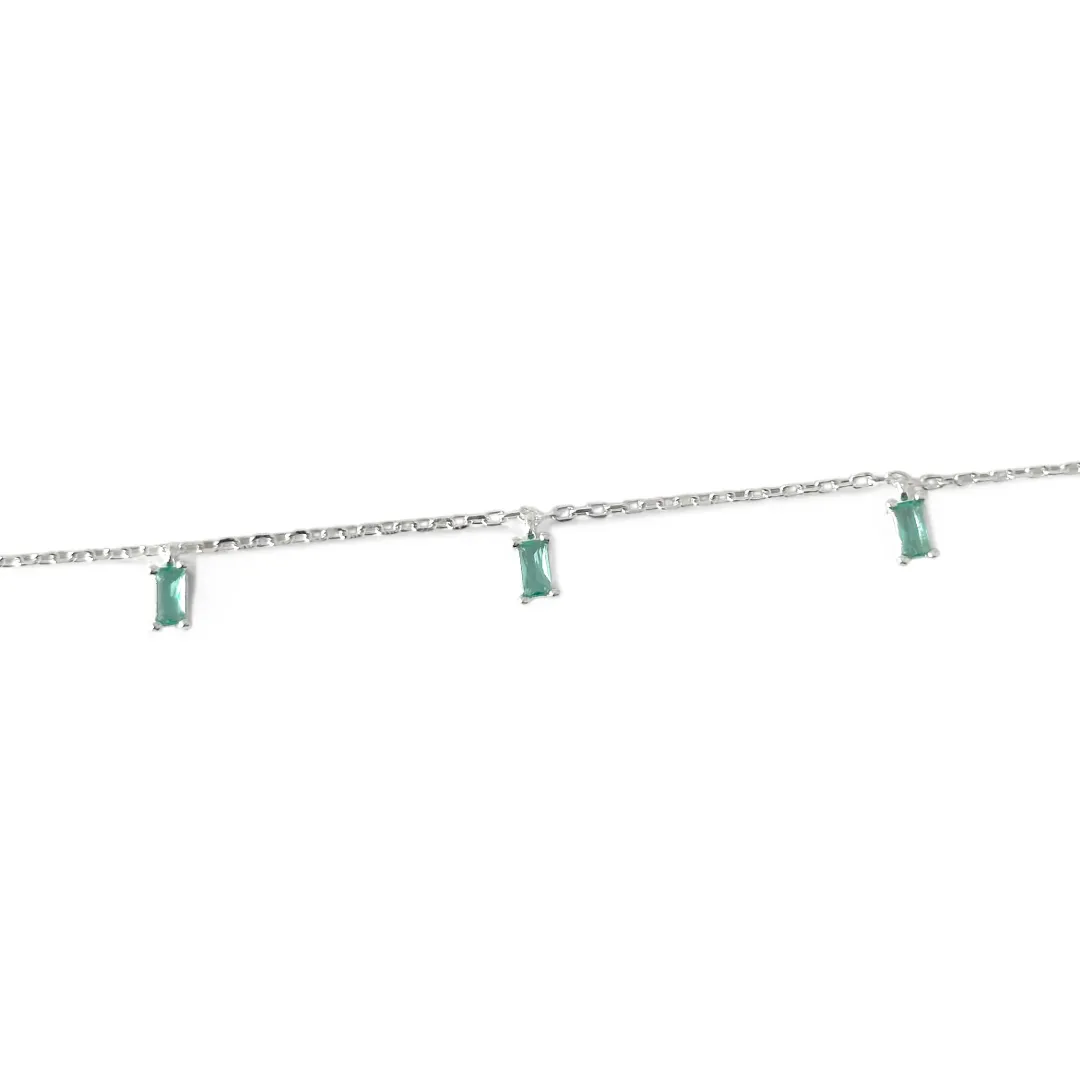 Pulseira Tornozeleira 3 Pedras Prata 925 Zircônias Verde Água