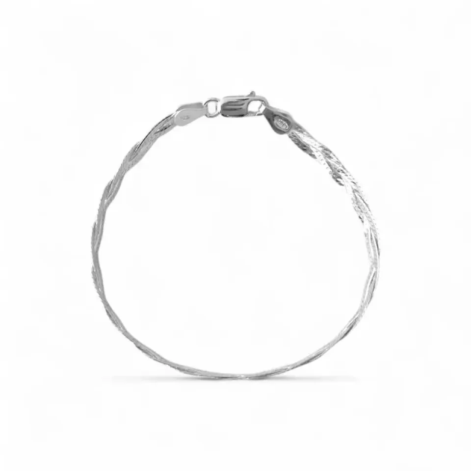 Pulseira Trançada Três Fios Laminada Prata 925
