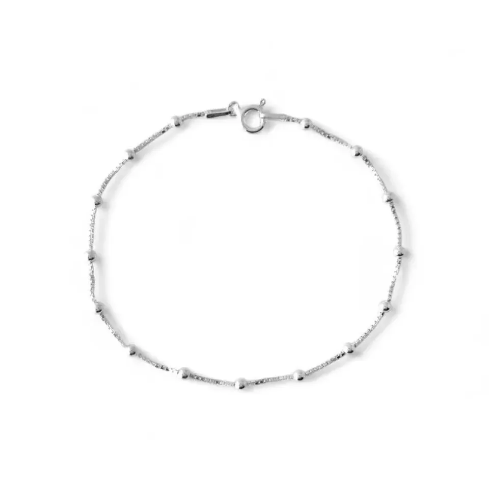 Delicada e versátil, esta pulseira em Prata 925 combina o charme da corrente veneziana com o toque moderno das bolinhas intercaladas, criando um visual leve e elegante.